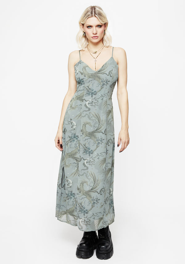 Disrupt Dragon Flocked Mesh Sleeveless Midi DressDisrupt Dragon Flocked Mesh Sleeveless Midi Dress