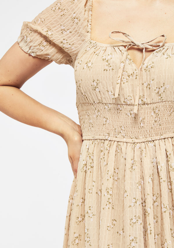 Astralis Floral Stripe Puff Sleeve Mini DressAstralis Floral Stripe Puff Sleeve Mini Dress