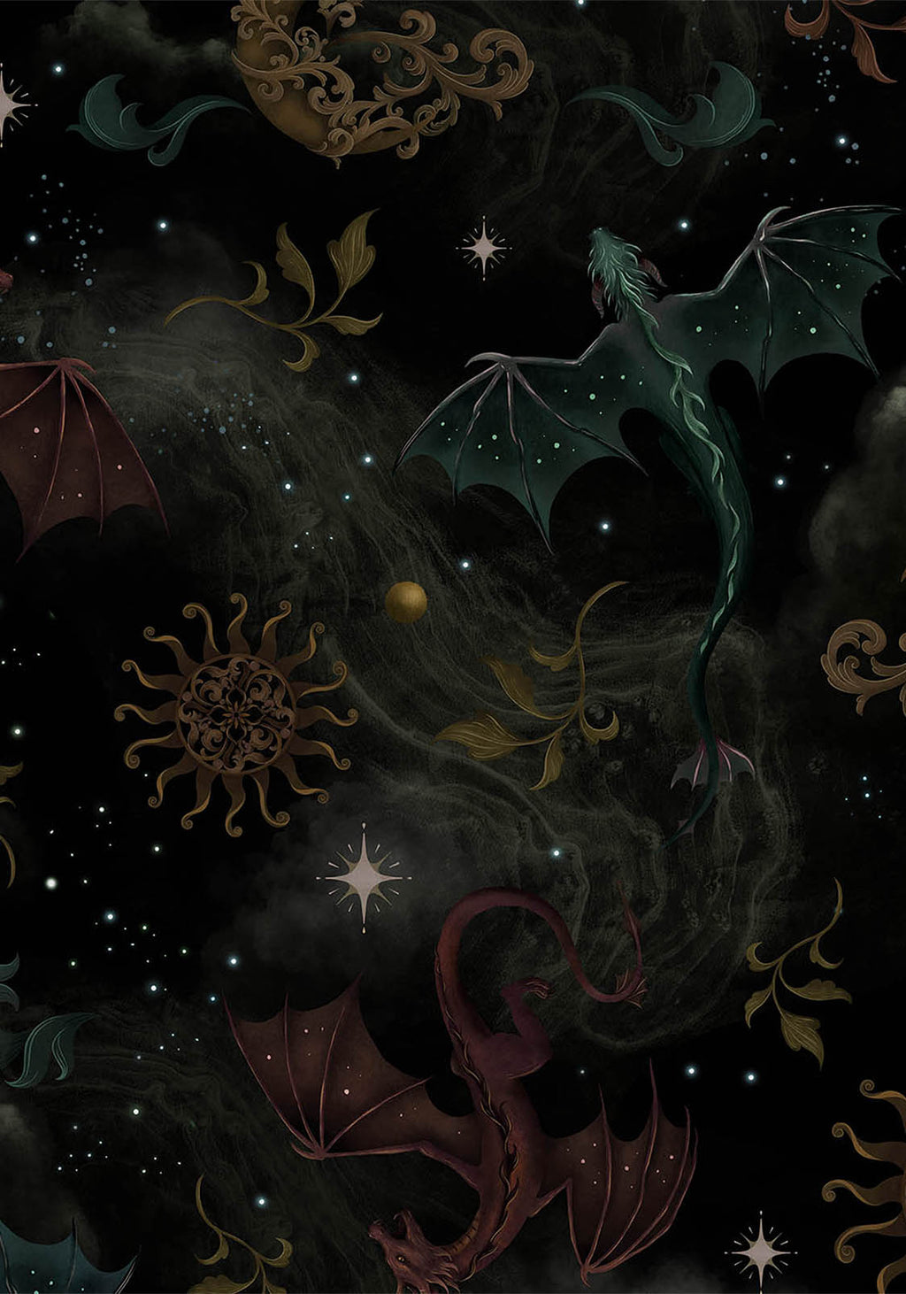 • Green Dragon & Celestial All-Over Print Flares