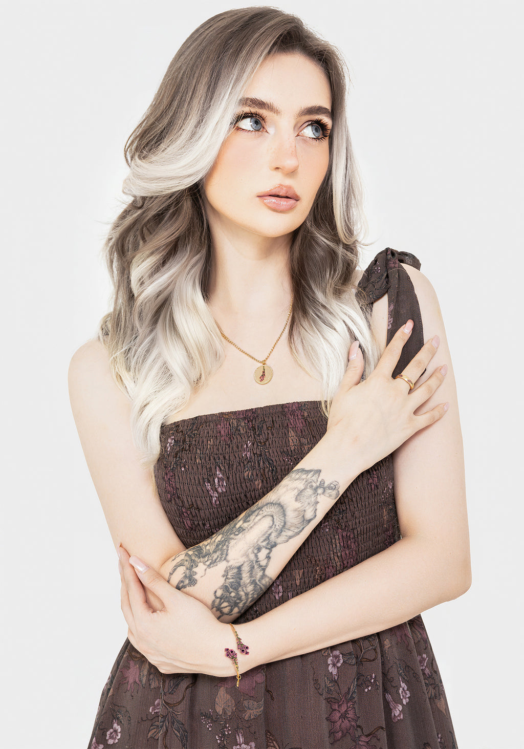 Etched with hand-painted foxglove flowers, this piece nods to beauty's deadly edge.