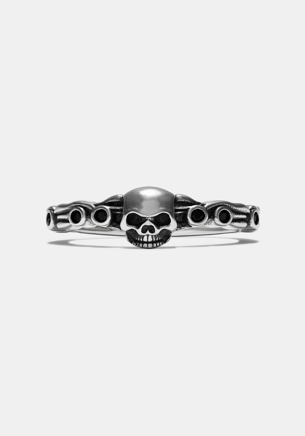 • Sterling Silver Ring with Skull Detail & Black Spinel Stones