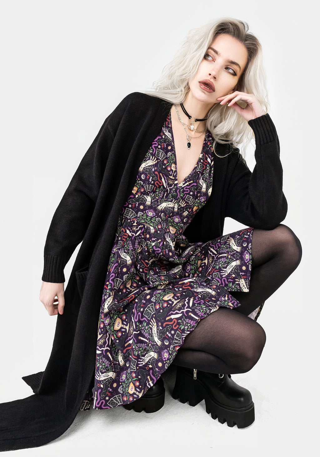 - Bewitching all-over Modern Mystic print features an eclectic mix of witchy symbols on a deep purple base