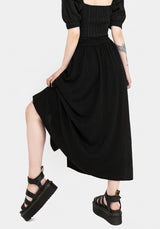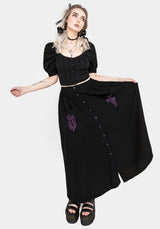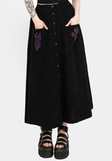 - Black embroidered button front midaxi skirt