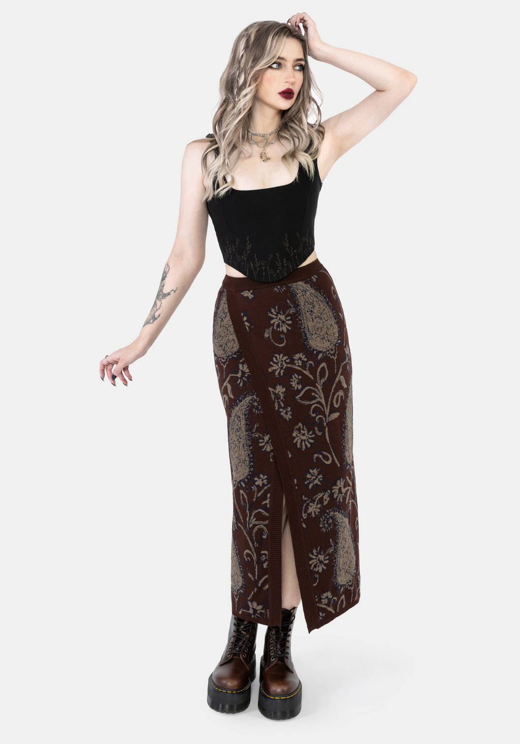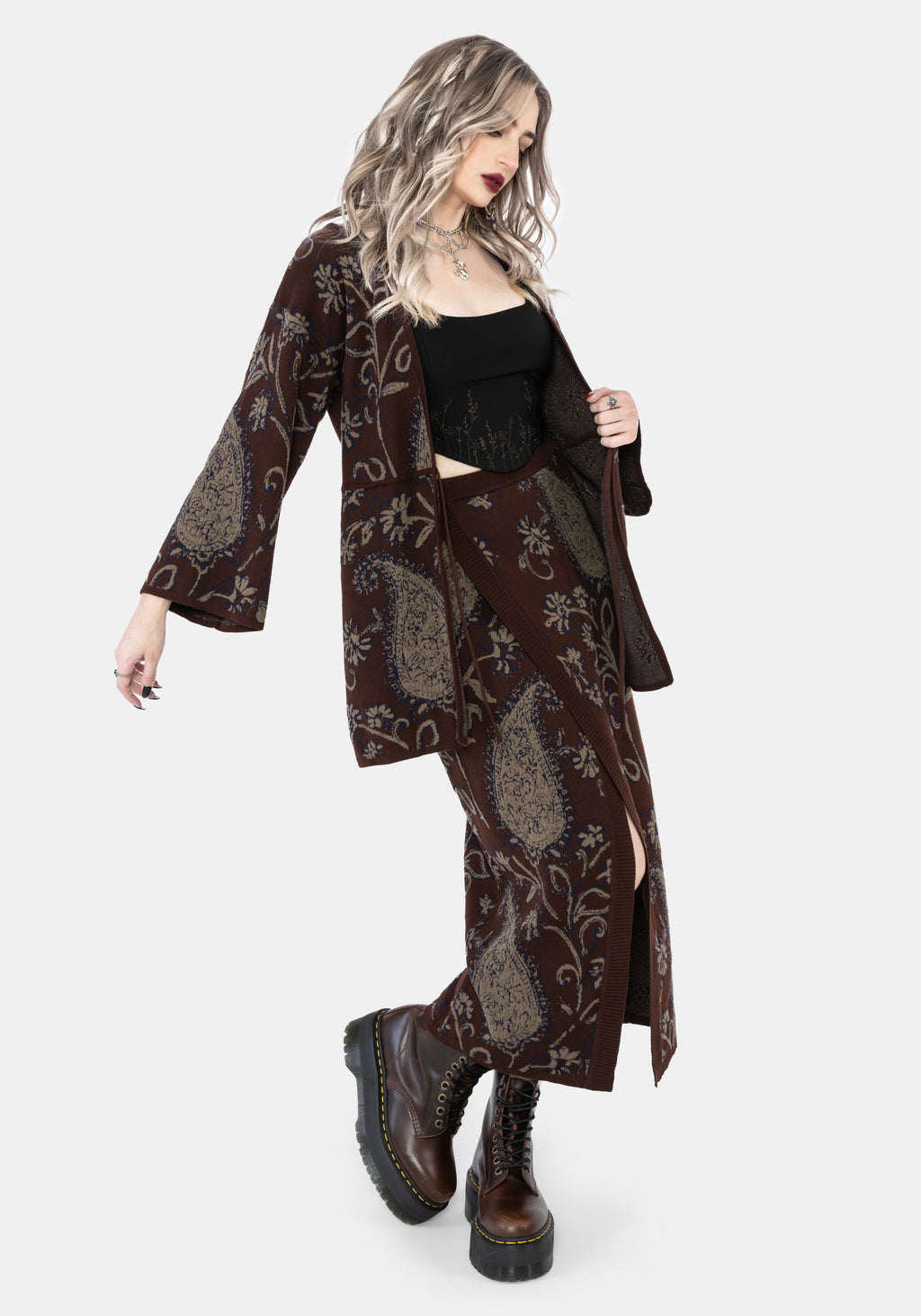 • Brown Knitted Midi Wrap Skirt
