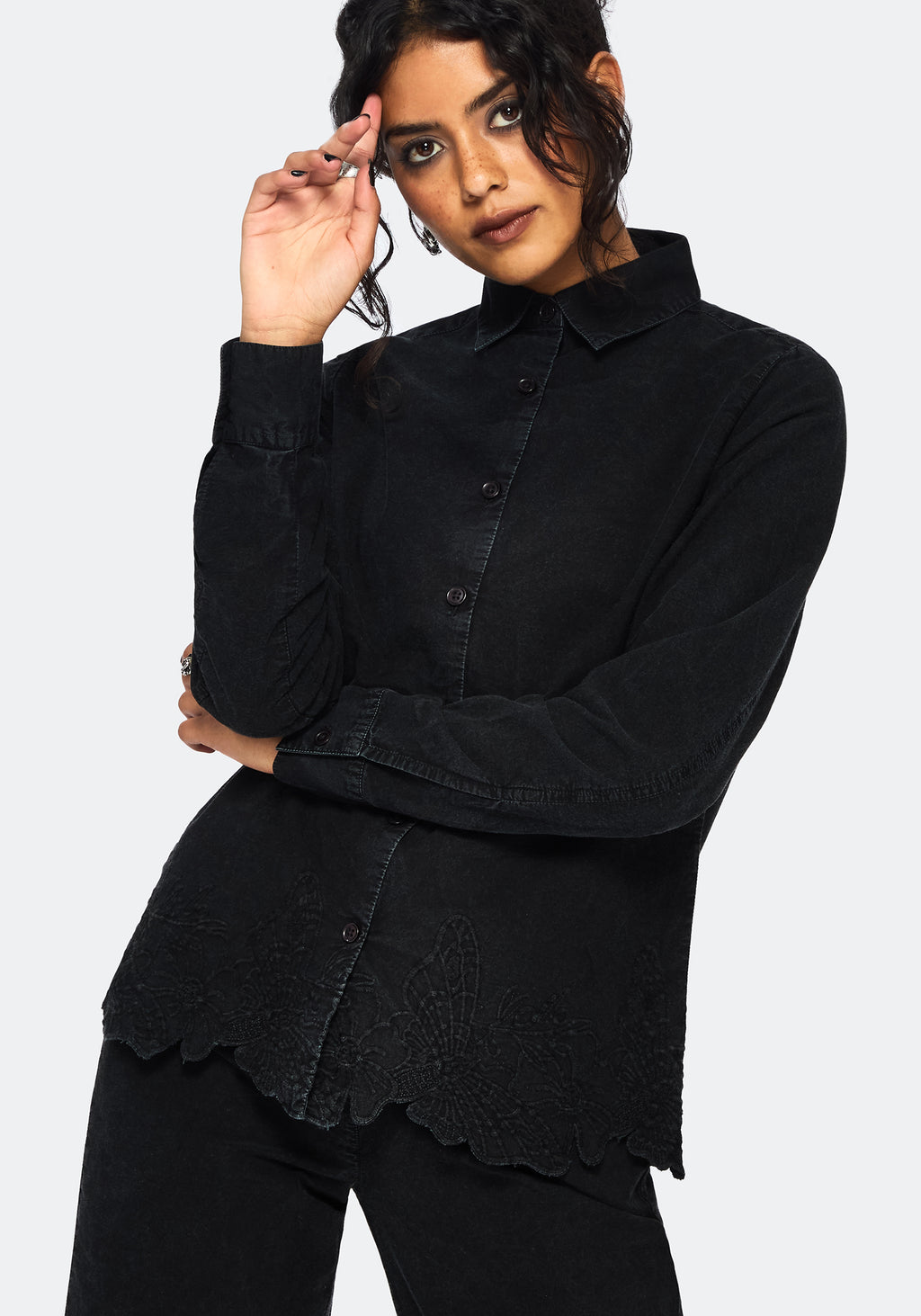 • Black Moth Broderie Hem Poplin Shirt