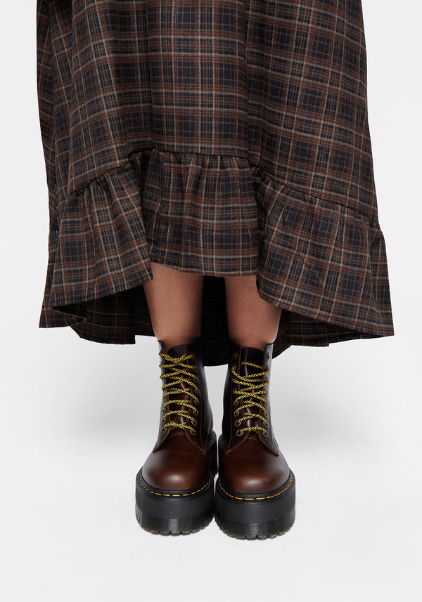 Terra Cotton Check Midi Skirt - BrownTerra Cotton Check Midi Skirt - Brown