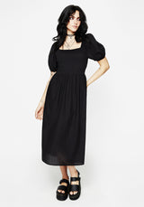 - Midi-length skirt falls from gathered waistband in soft pleats
