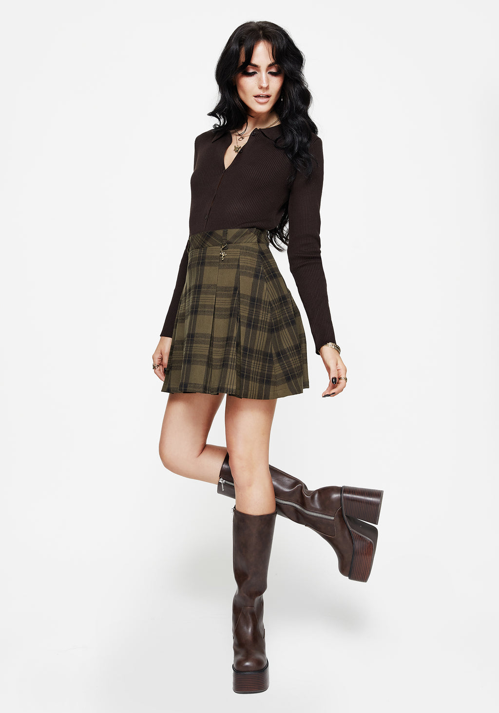 Cecily Check Pleated Mini Skirt With Frog Charm