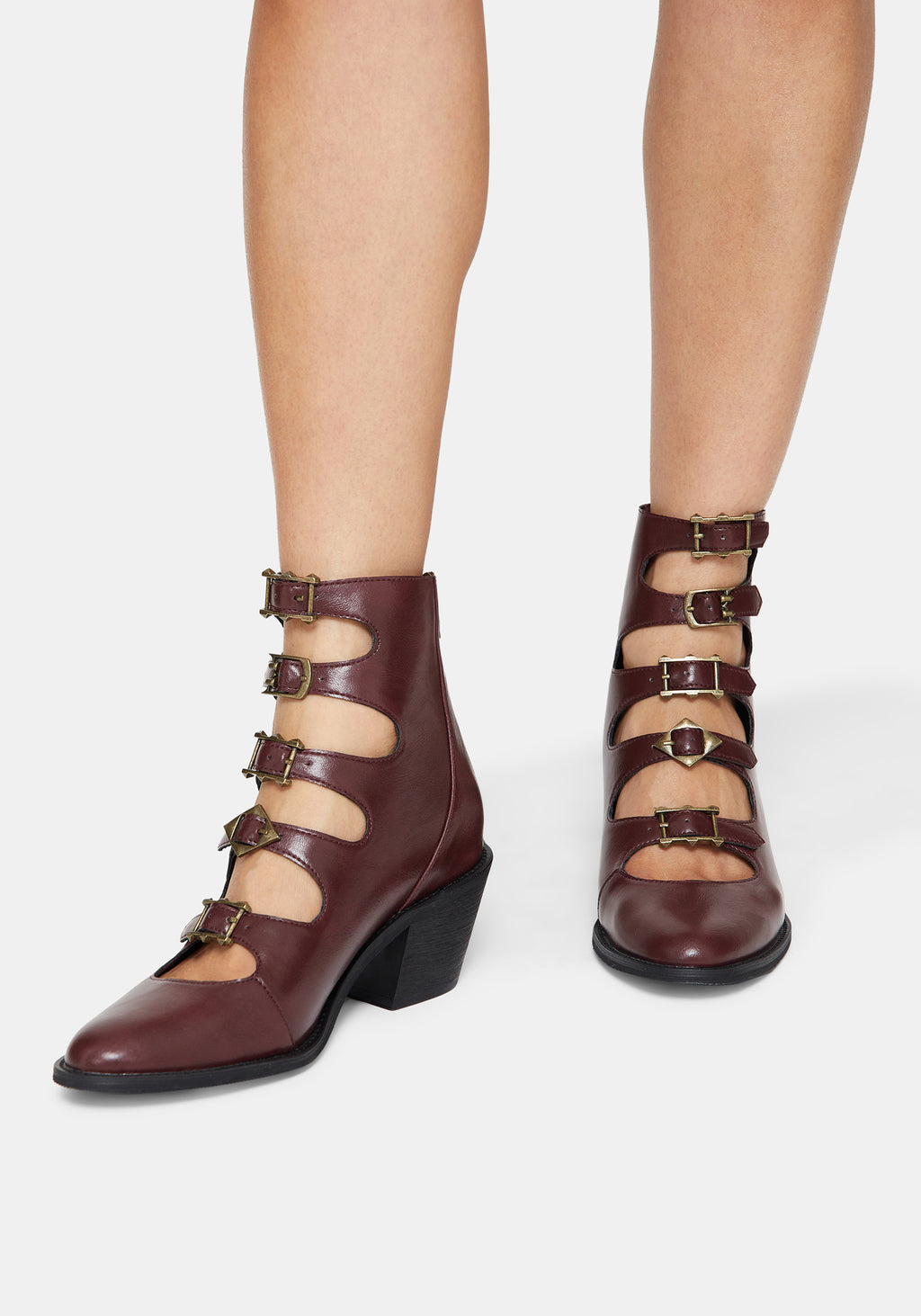 - Buckled pointed ankle boots