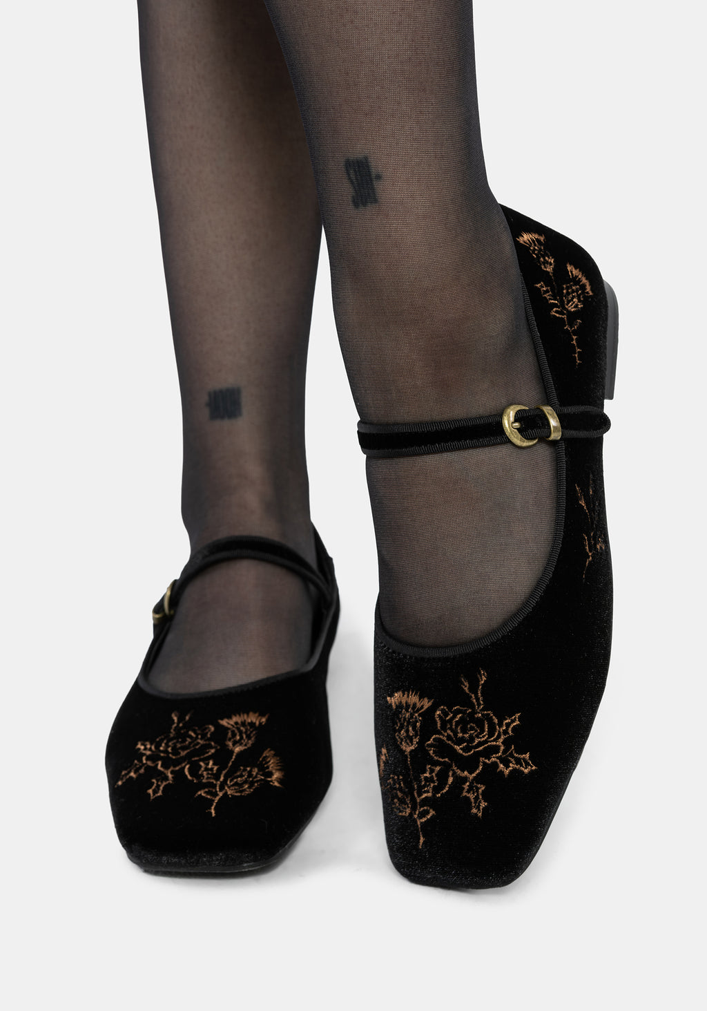 Nyla Velvet Embroidered Ballerina Pumps