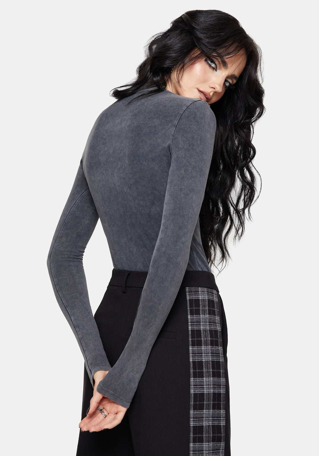 • Washed Black Long Sleeve Fitted T-Shirt