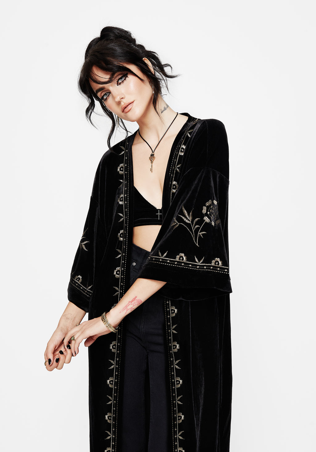 • Black Velvet Longline Kimono