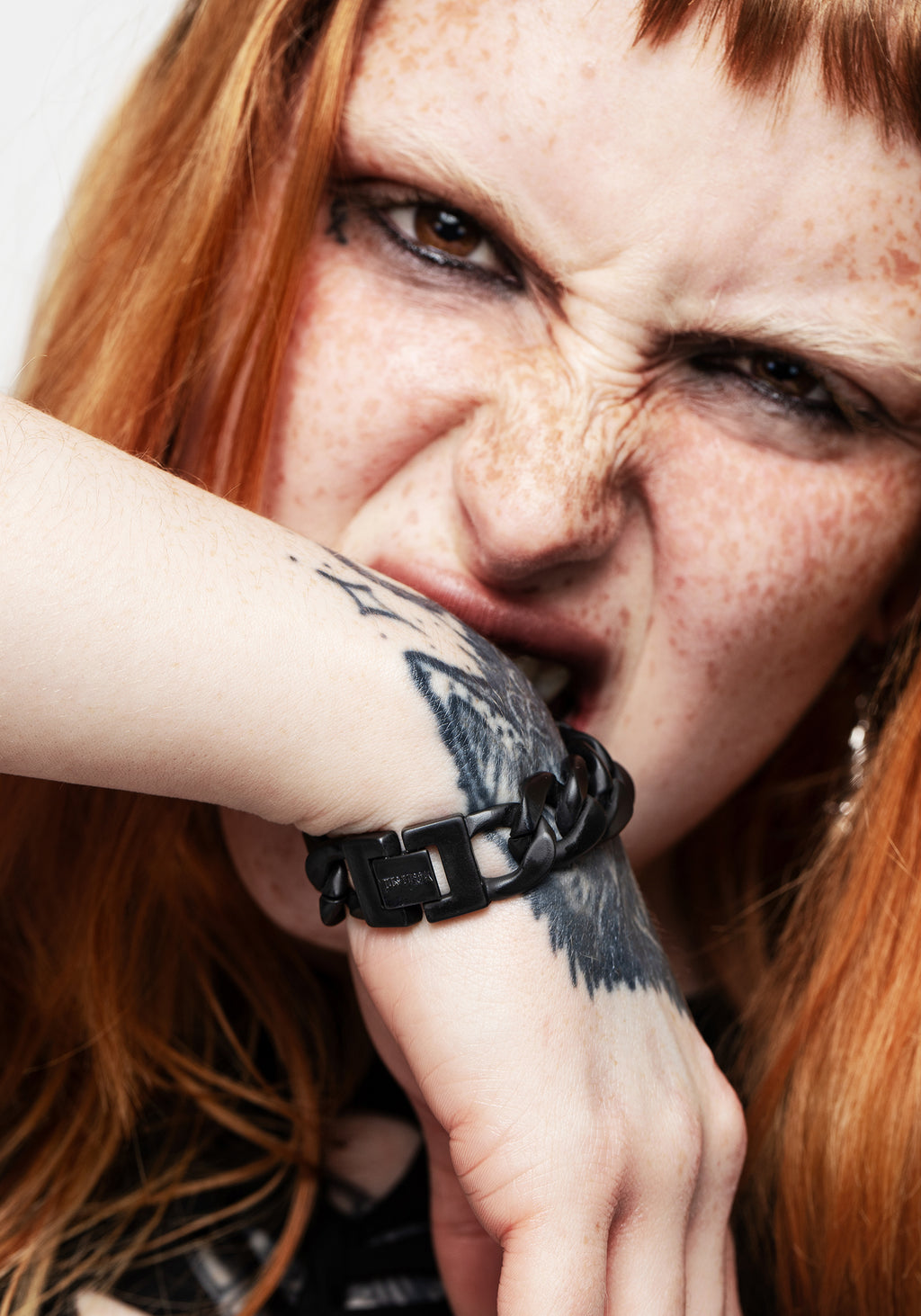 Finally, a chain bracelet that fits with your all-black aesthetic! This chunky rope chain bracelet pairs perfectly with your alt outfits on those days when you just wanna feel casual. With a rubberised matte black coating & an easily fastened branded latch closure, this jewellery is your new favourite understated accessory.
