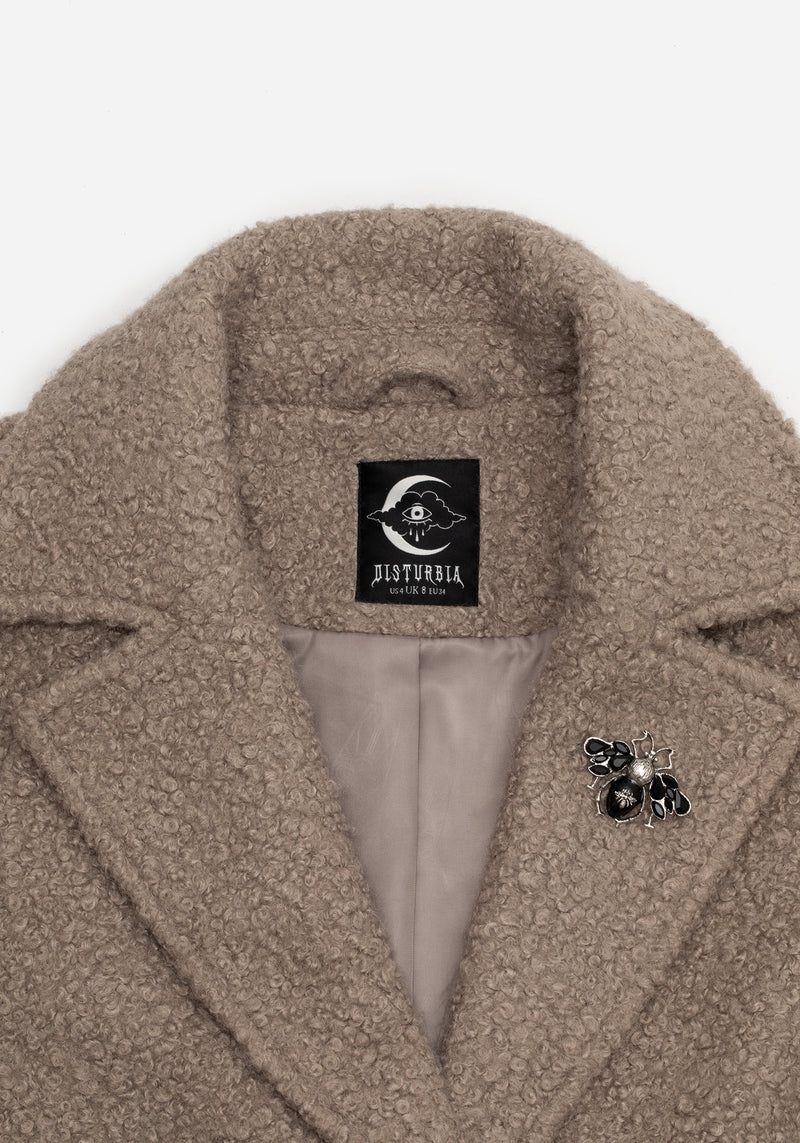 Gorgon Bouclé Longline Oversized Coat with Bee Brooch - Taupe