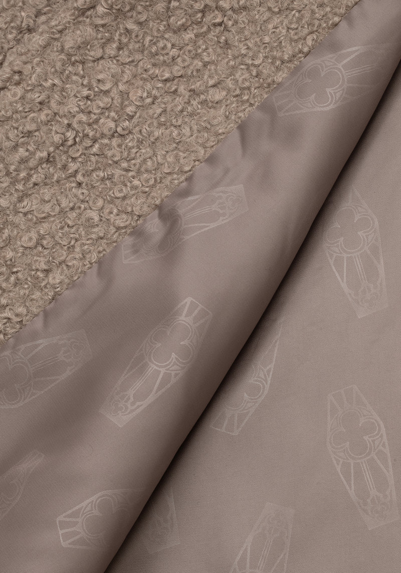 - Cosy curly light taupe bouclé fabrication