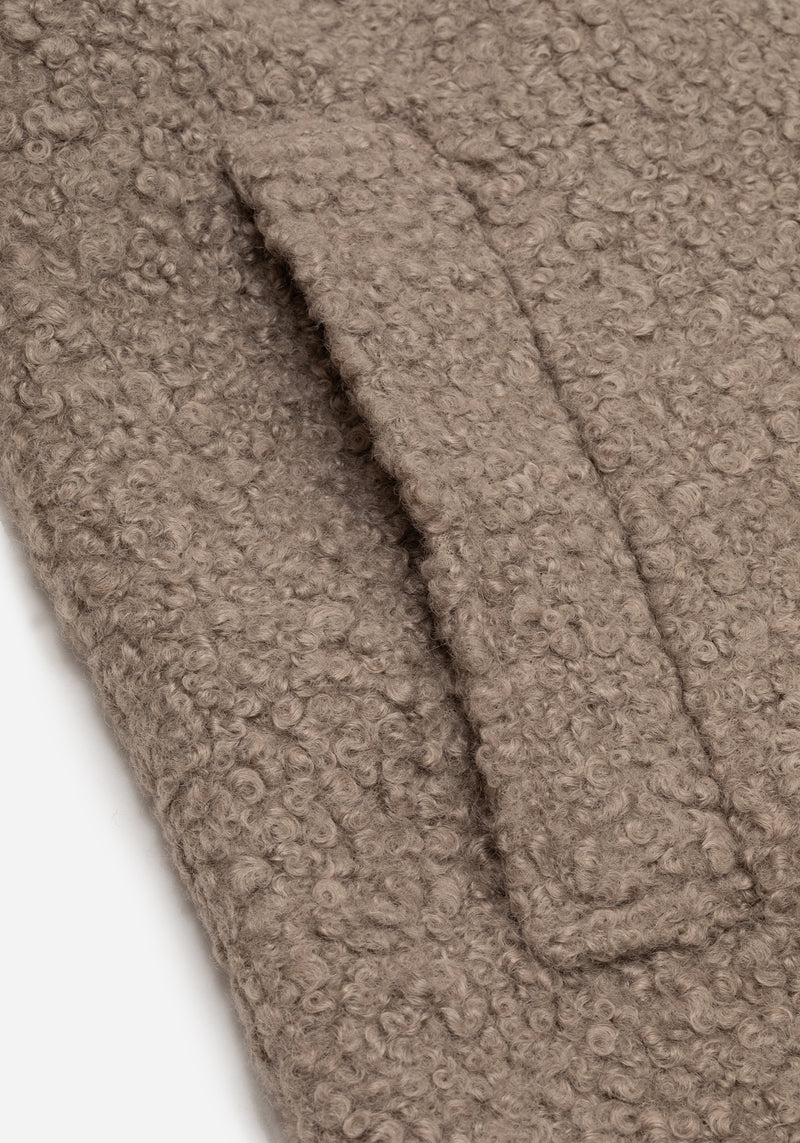 - Oversized taupe brown bouclé coat