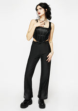 - Black faux leather corset top
