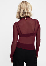 - Burgundy mesh high neck long sleeve top
