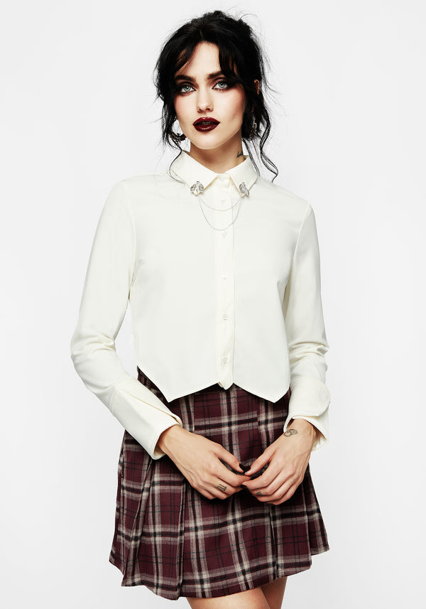 Mire Button Up Puff Sleeve Chain Collared ShirtMire Button Up Puff Sleeve Chain Collared Shirt