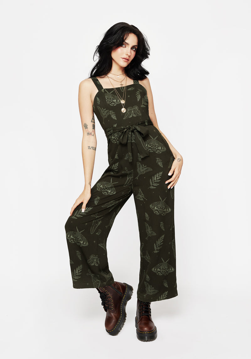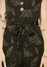 • Dark Green Fern and Moth Print Wide Leg Jumpsuit