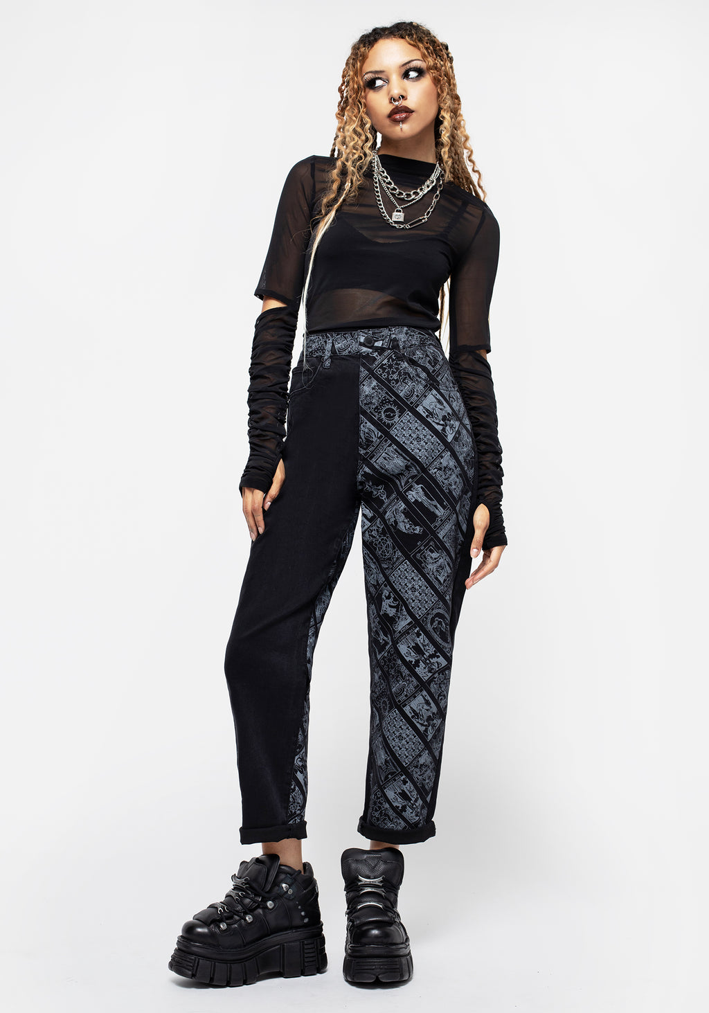 - Black washed denim contrasts with long-lasting, crisp discharge printed tarot design