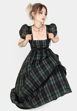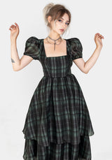 - Black & green check print organza layered midi dress