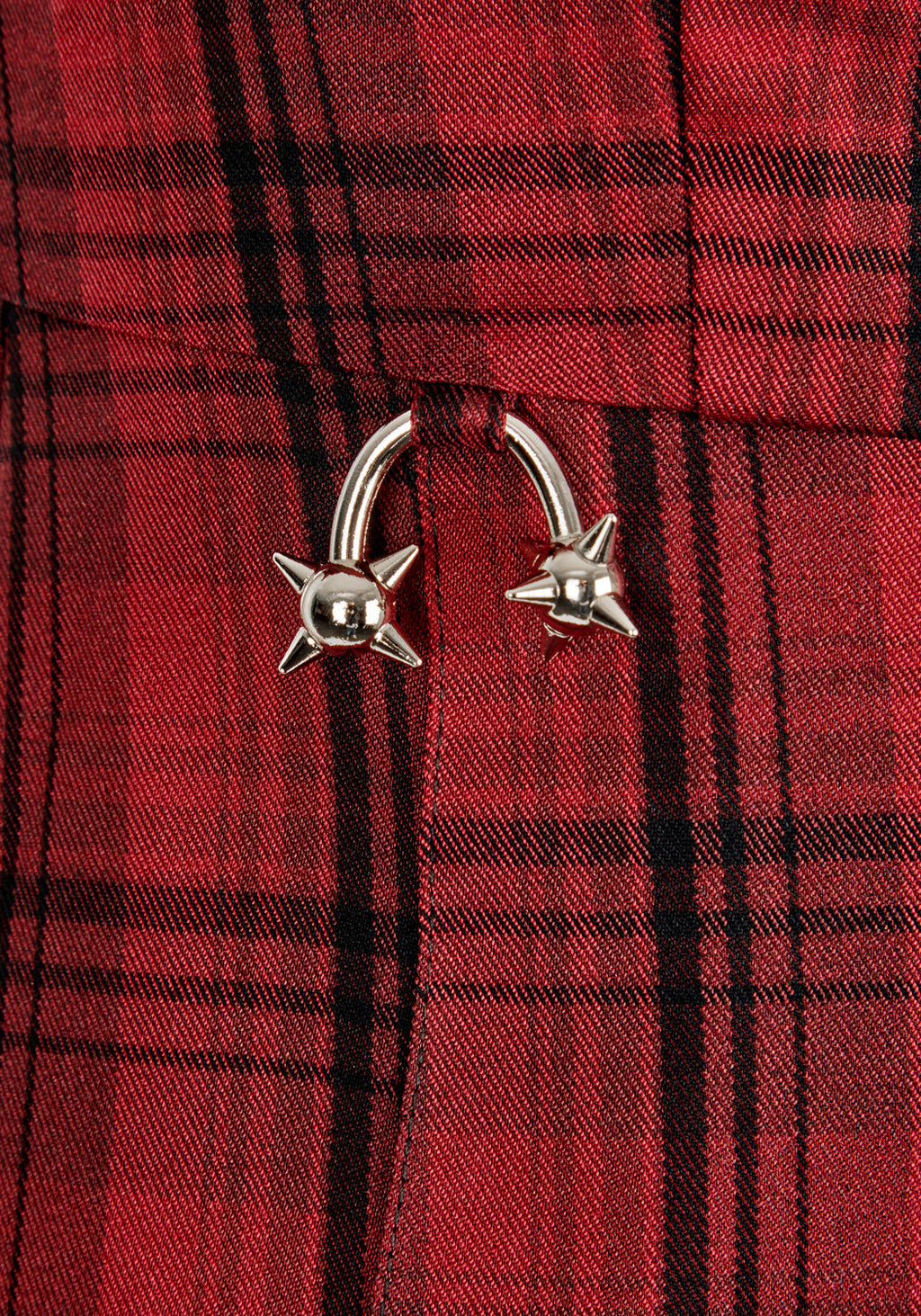 ✦ Silver spiked septum hardware hangs at hip