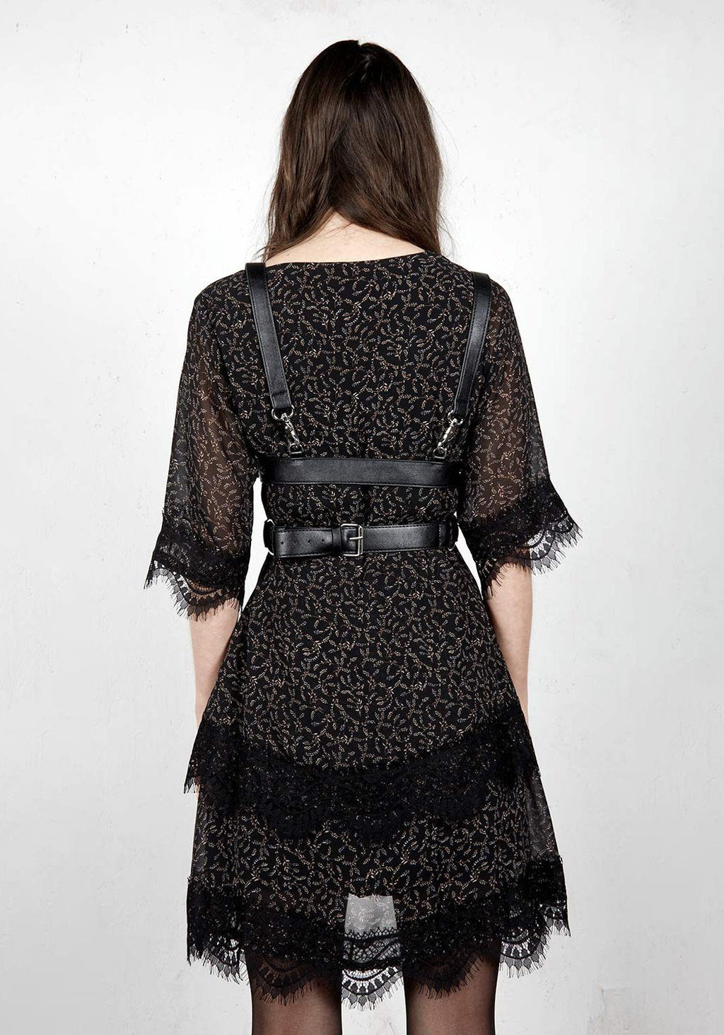 Secured with series of silver metal O-rings, D-rings & swivel rounded clasps