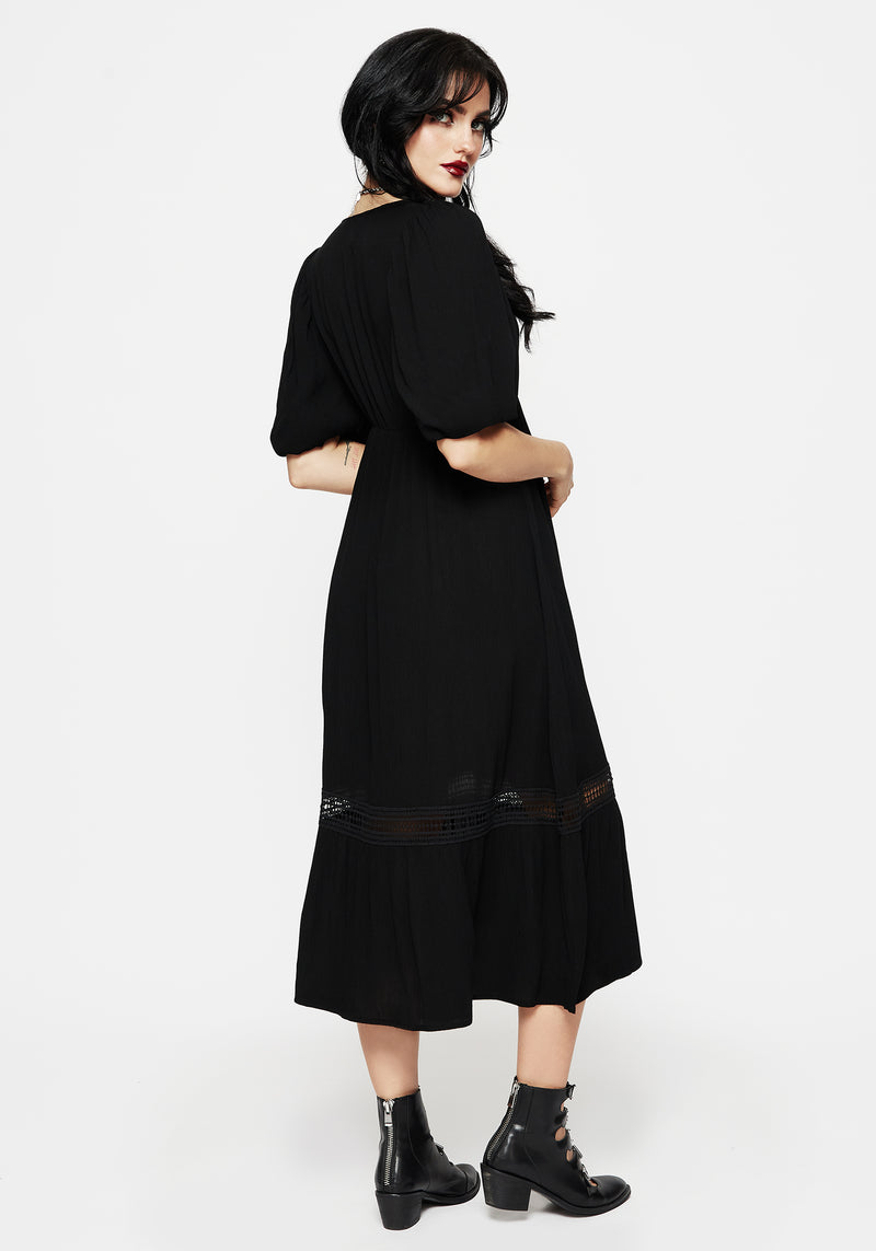 Mirage Lace Insert Puff Sleeve Maxi Dress