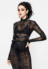 - Two shoulder straps connect belt to choker via O-rings & lobster clasps