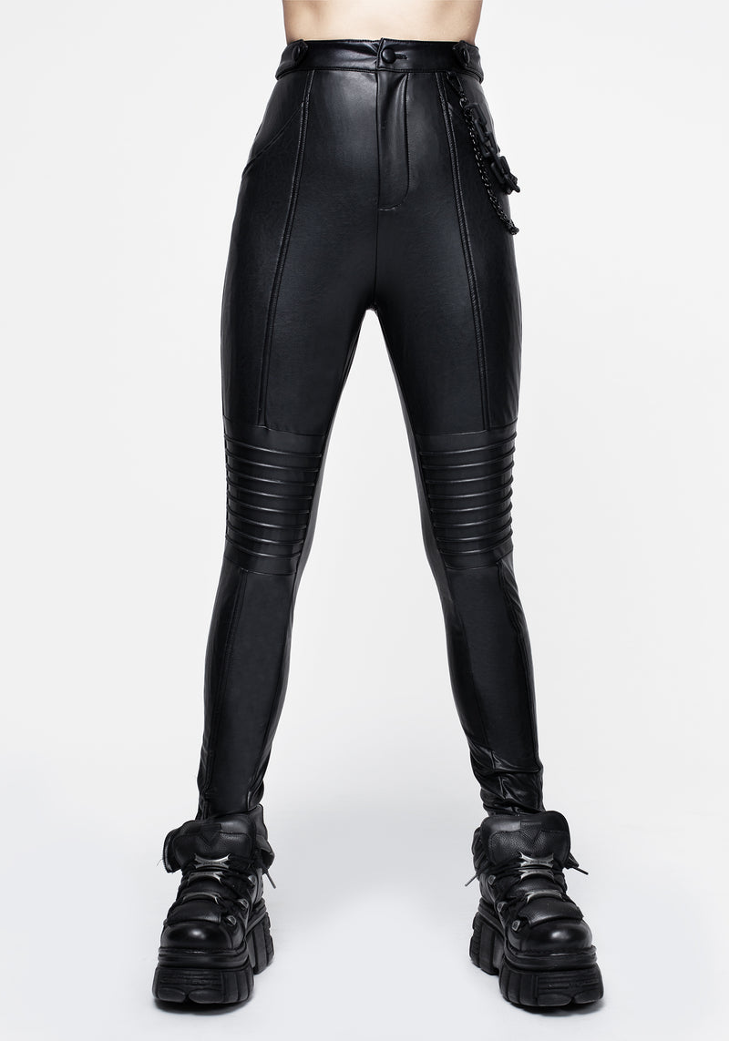 - Stretchy faux leather fabrication with soft-touch interior (because biker fashion needn’t be uncomfortable!)