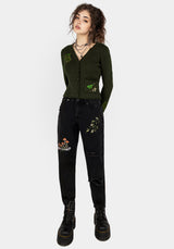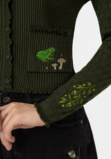 - Green frog & mushroom embroidered pointelle knit cardigan