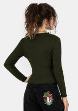 - Grungy green rib knit on body & pointelle knit on sleeves