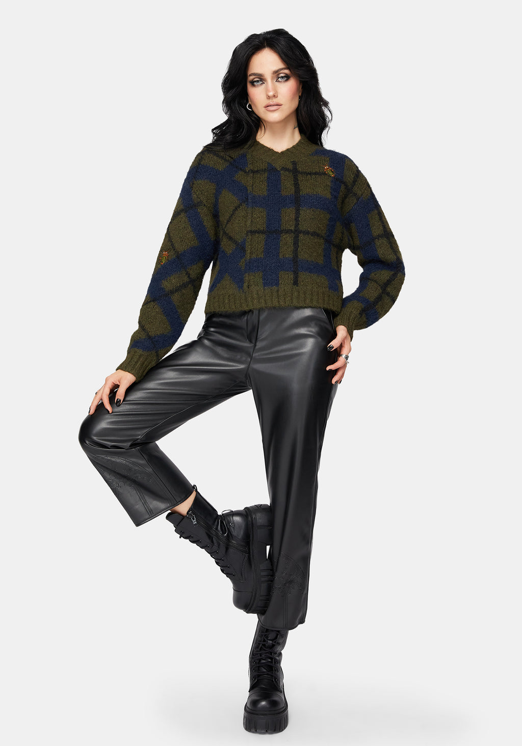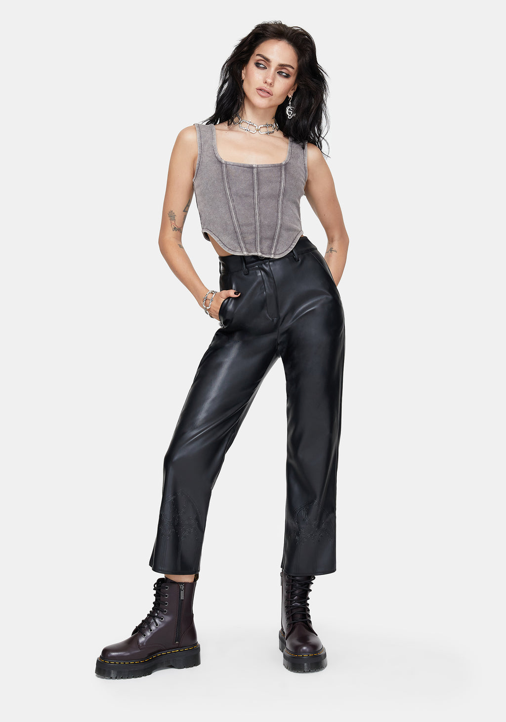 Blackwater Debossed Faux Leather Straight Leg Cropped Trousers