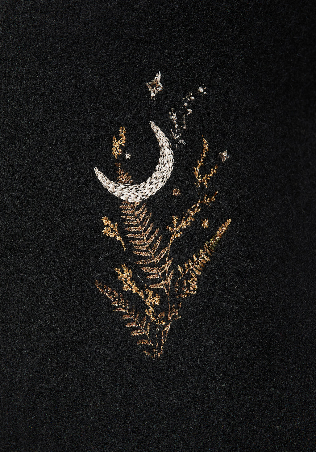 Abellona Floral Moon Embroidered Balloon Sleeve Knit Cardigan