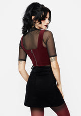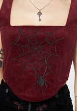 - Red spiderweb embroidered corduroy corset top