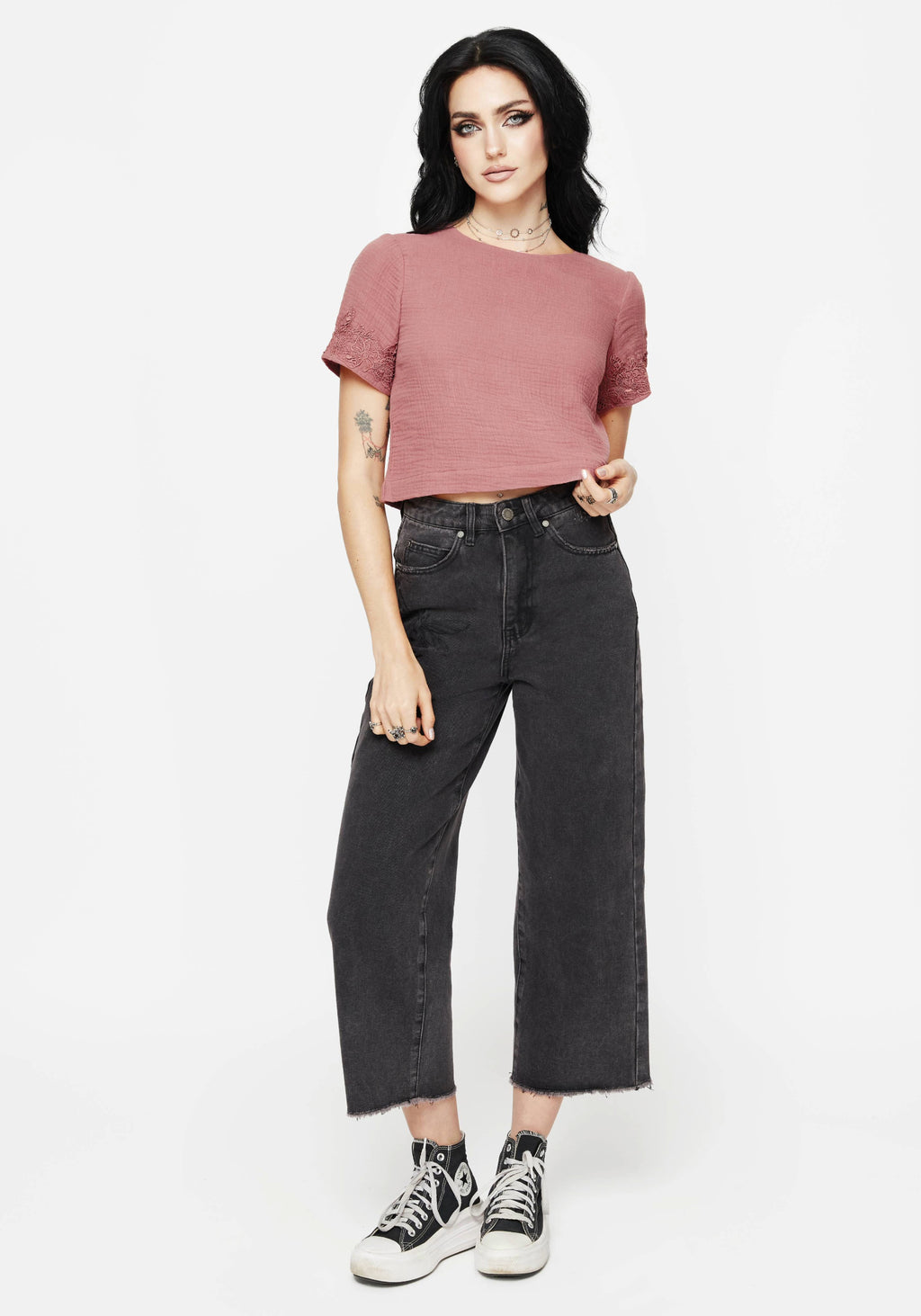 • Pink Cropped Short Sleeve Top