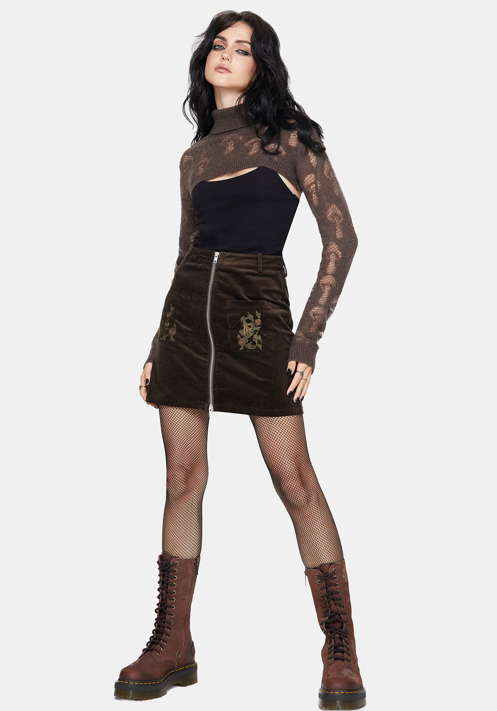 Harriet Mushroom Jacquard Extreme Crop Sweater - Taupe