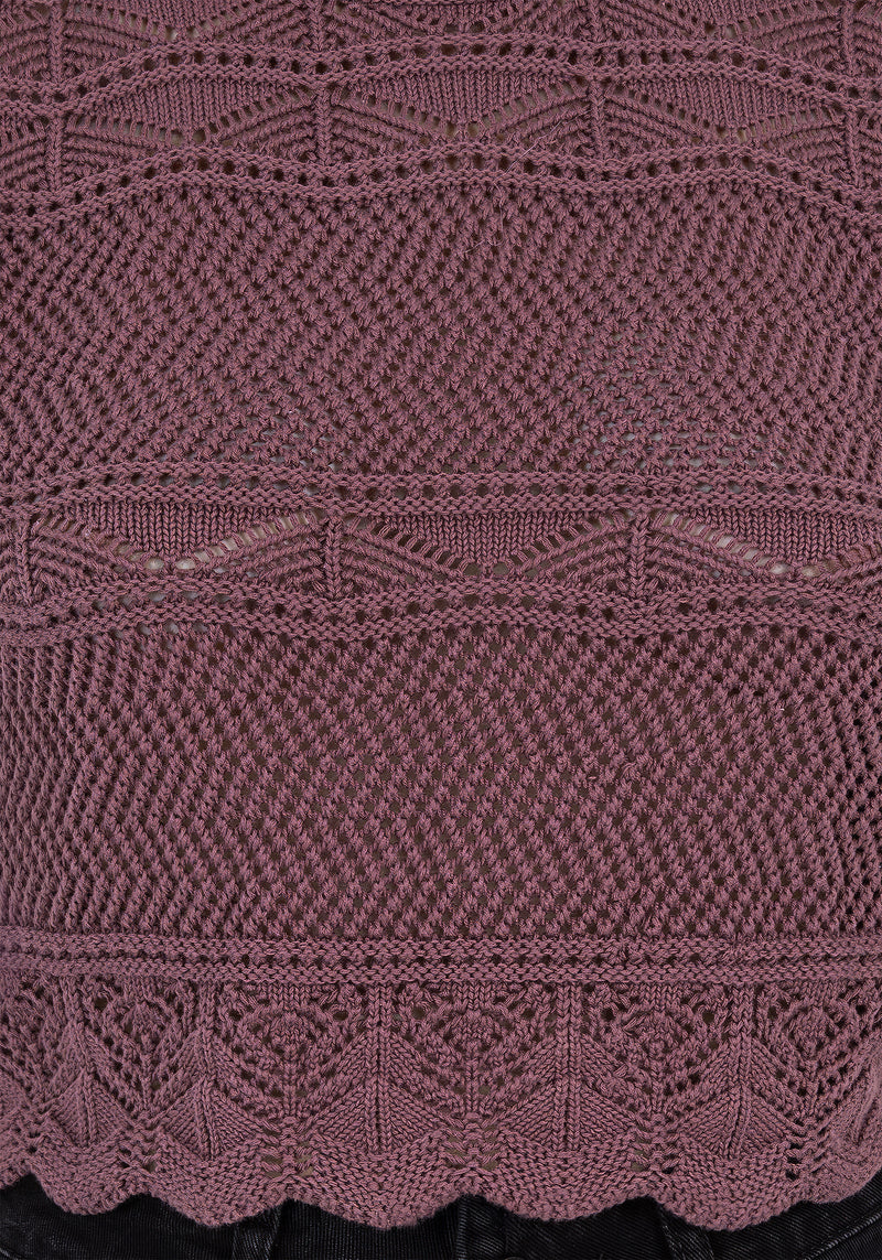 • Purple Knit Pointelle Short Sleeve Crop Top