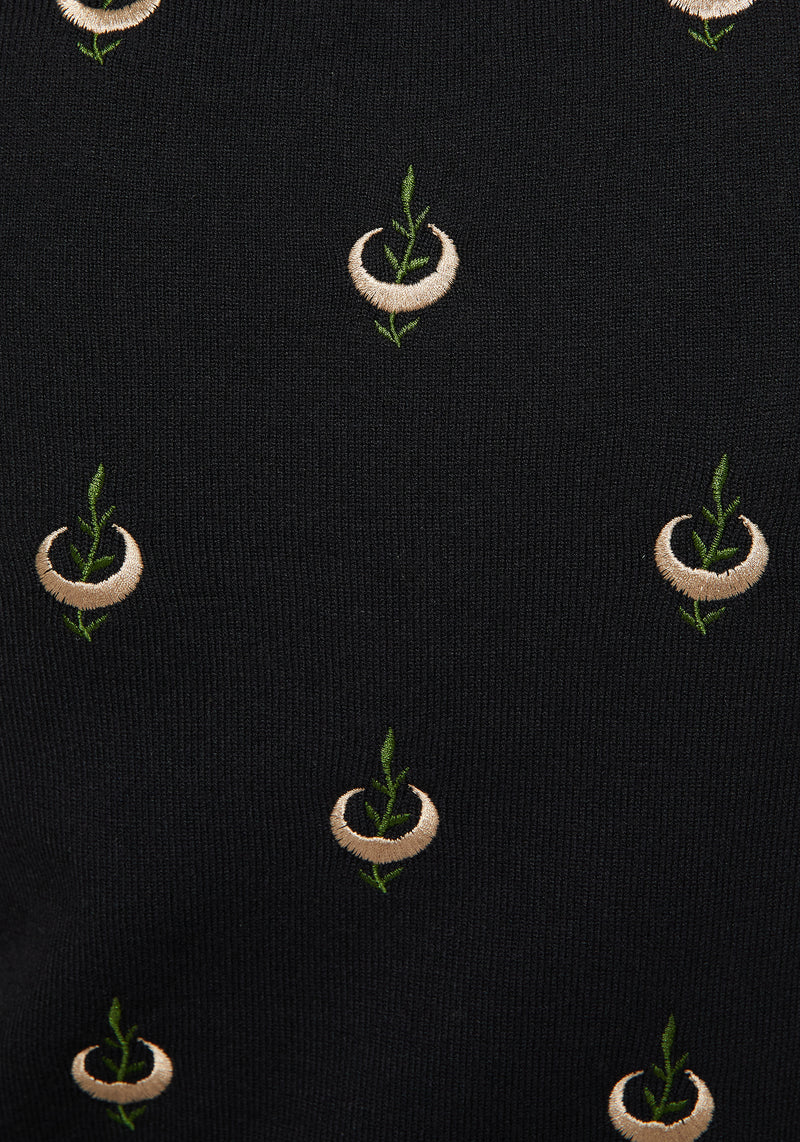 • Moon & Leaf Embroidered Button Up Knitted Vest