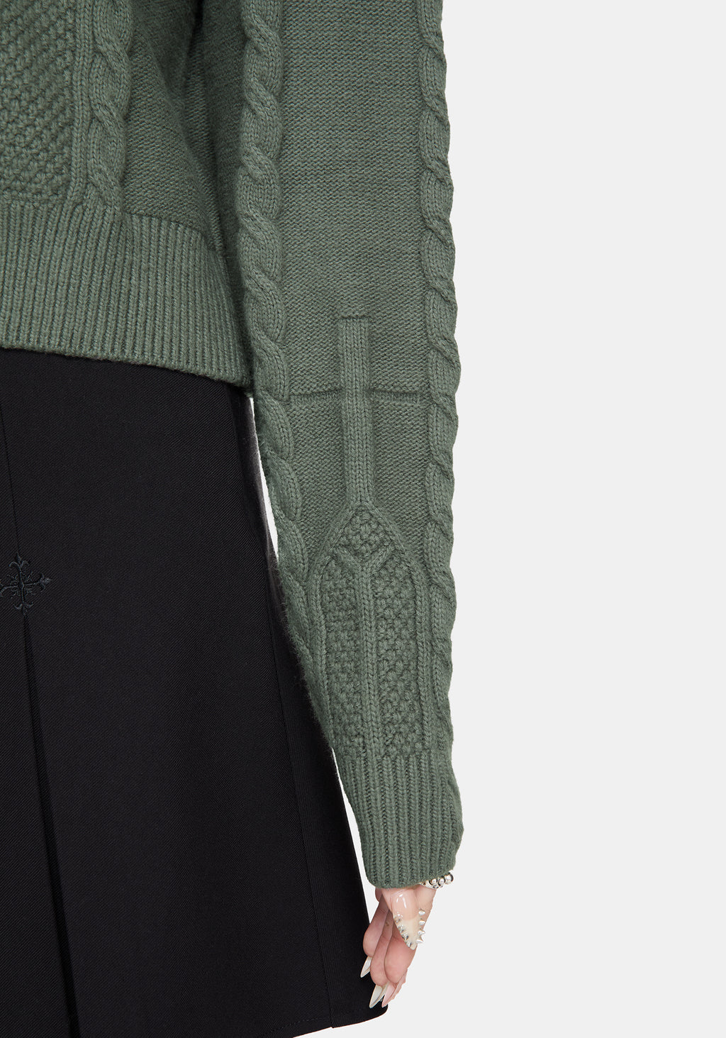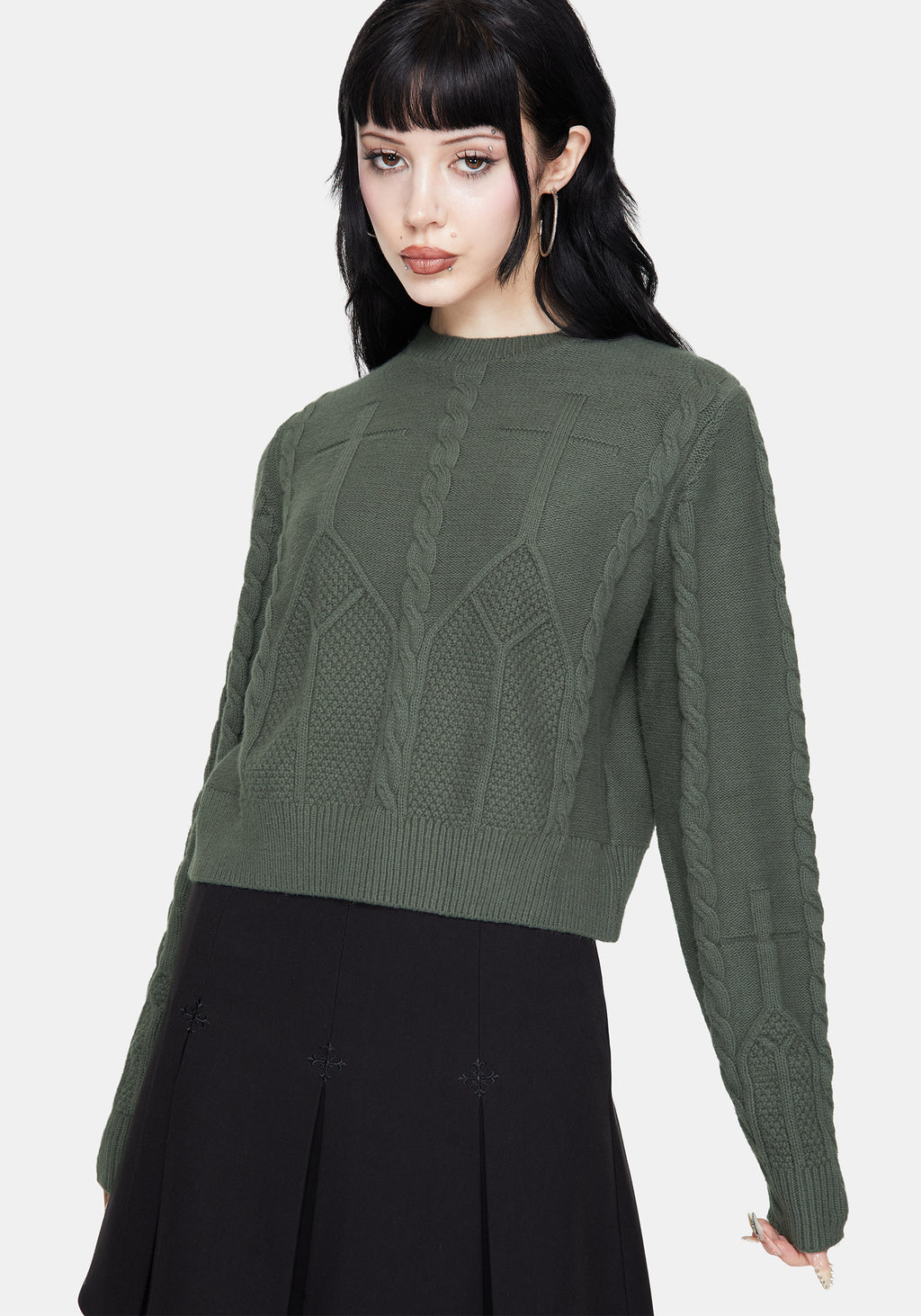 Noir Cotton Gothic Arch Cropped Cable Knit Jumper