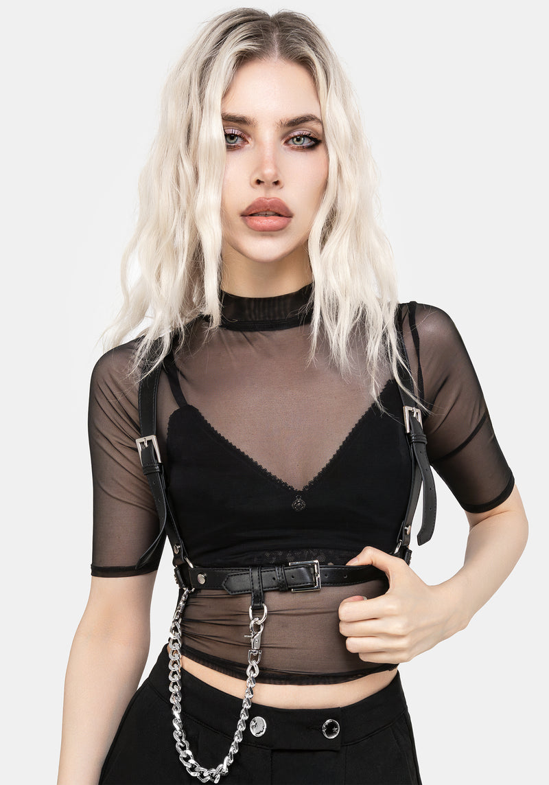 - Black mesh crop top