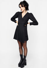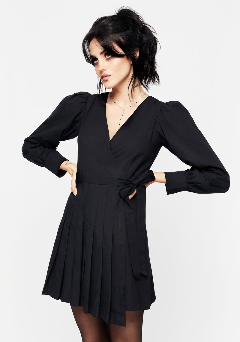 - Long bishop sleeves add drama & volume (ending with buttoned cuffs)
