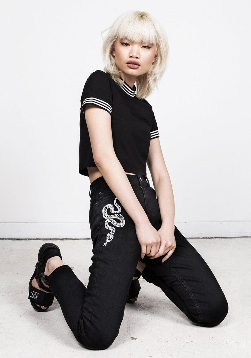 𓆚 Slim fit high-waisted jeans with embroidery details