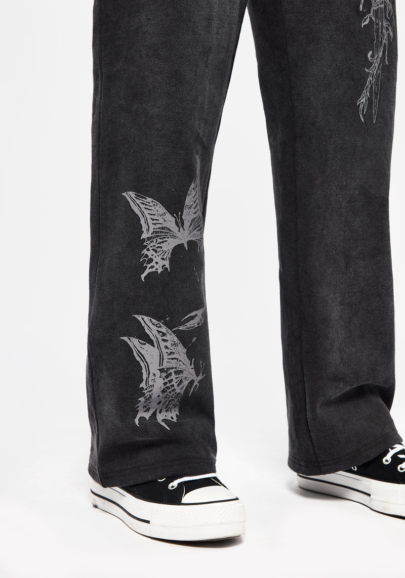 • Black Graphic Print Straight Leg Sweatpants