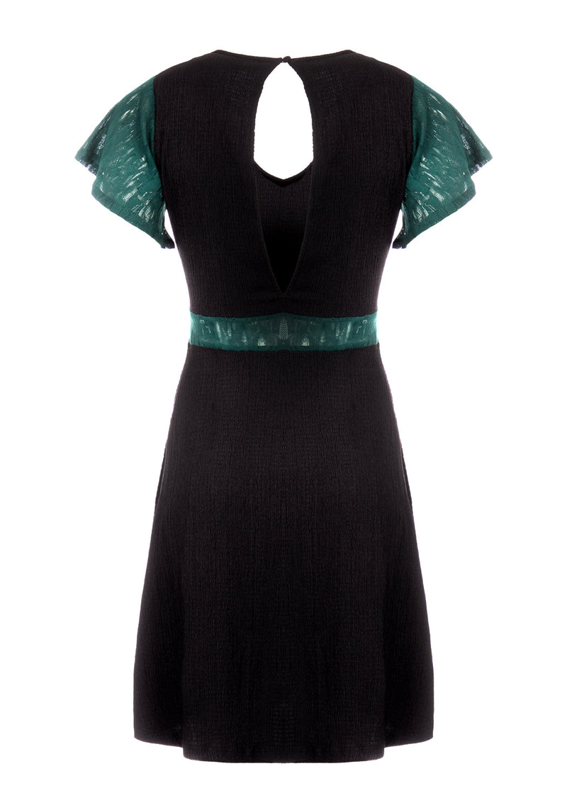 ✶ Dark green lace panel midi dress