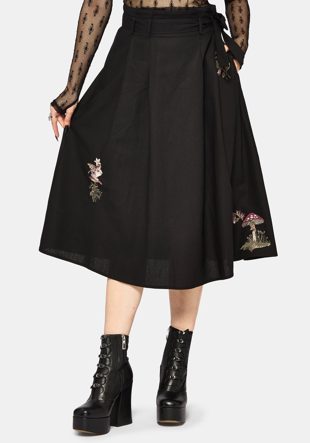 • Black Embroidered Midi Skirt