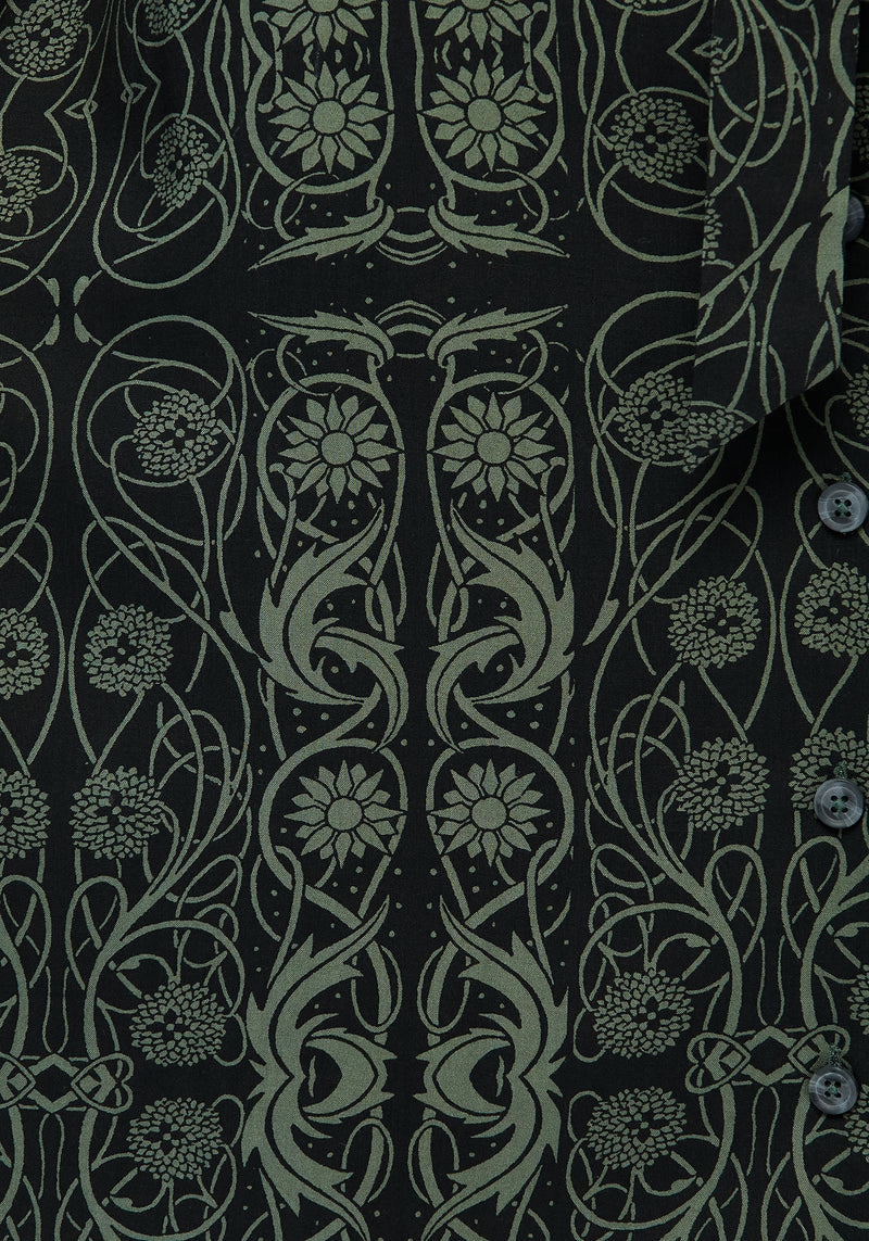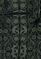 - Green Celtic-inspired floral print on a black base