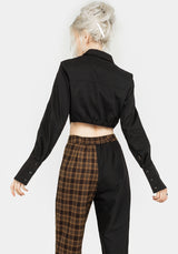 - Black & brown check spliced tailored trousers