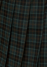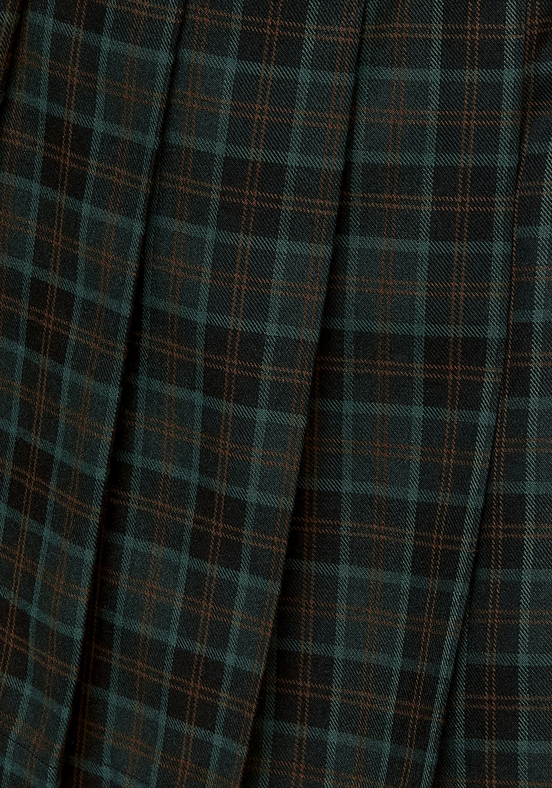 - Soft green check fabrication with deep set pleats to add movement